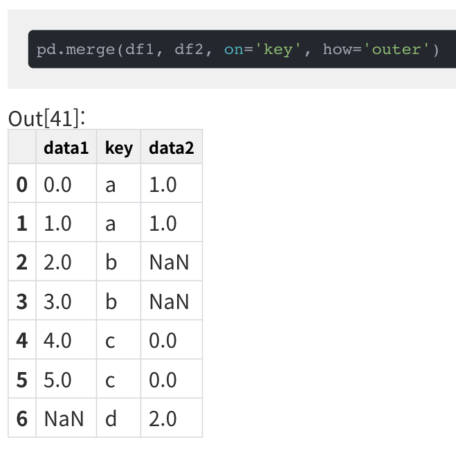 pd.merge(df1, df2, on='id', how='outer') # outer join : 전체 데이터를 합치고, 공통되지 않는 값은 NaN 반환