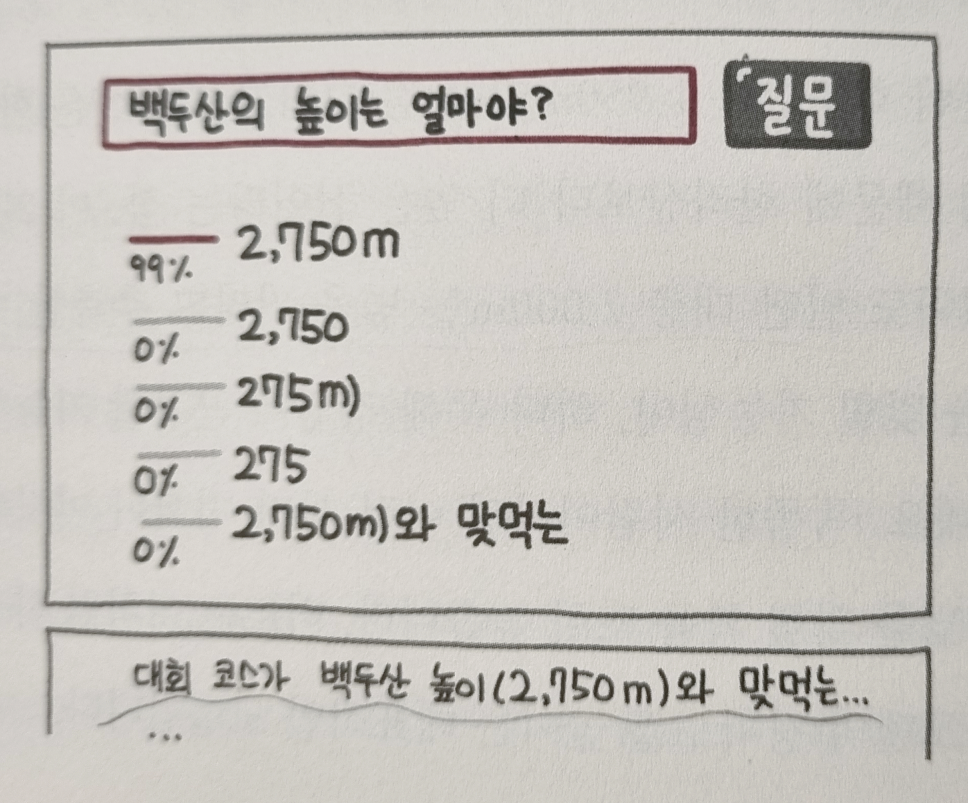 예시 : "백두산의 높이는 얼마야?" 지리책을 많이 읽는 친구는 쉽게 대답할 것.