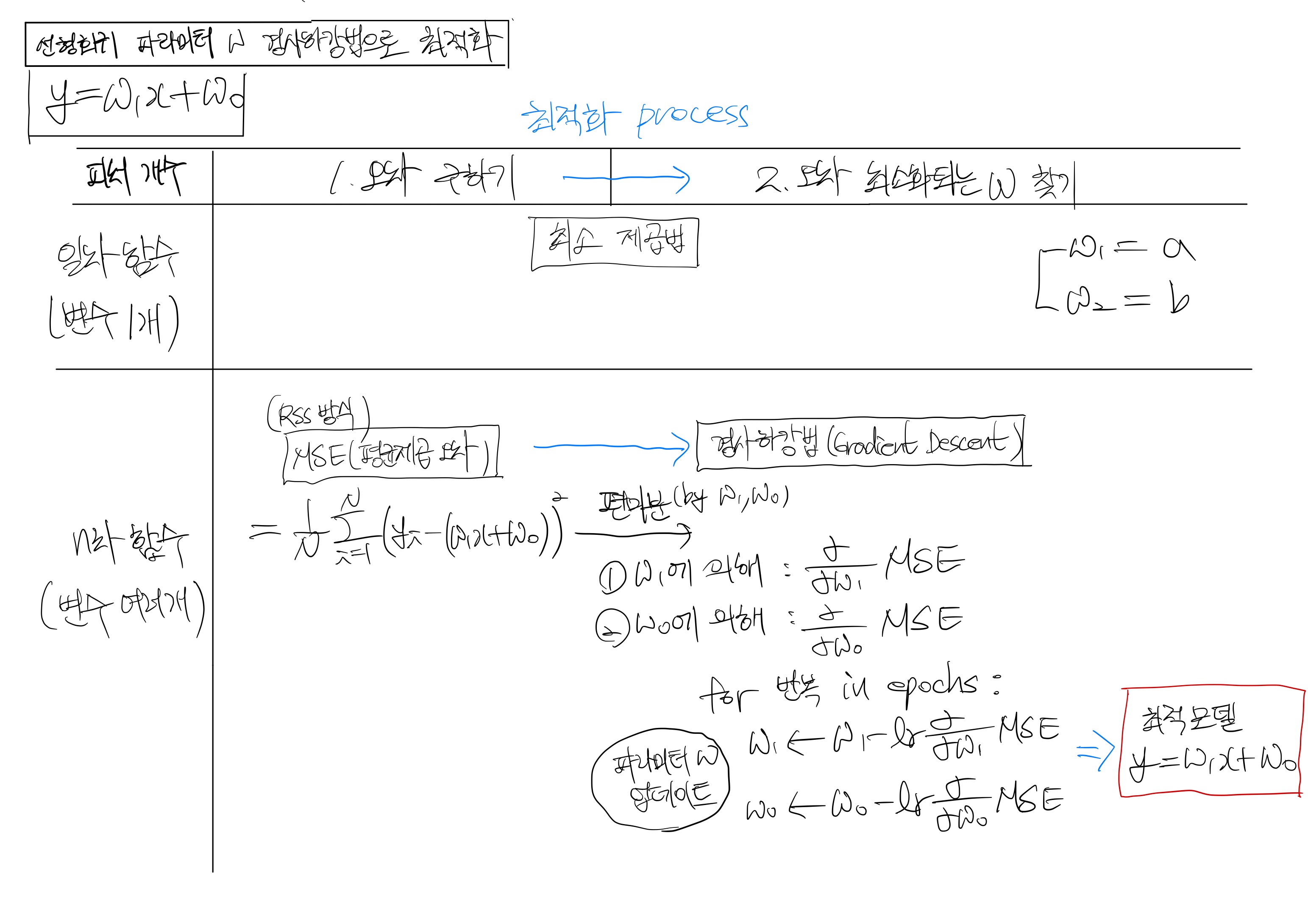 선형회귀 최적화(with 비용함수, 경사하강법)