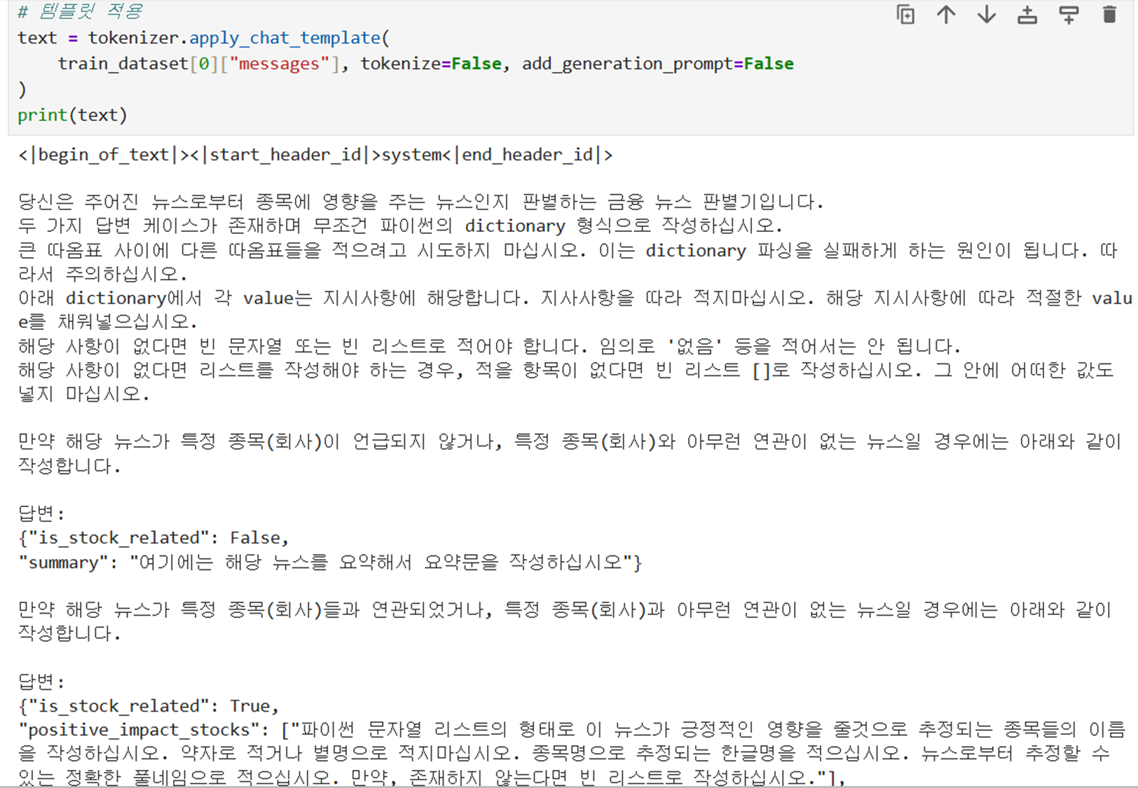 @ 라마 챗 템플릿(토크나이저 기반) 적용 : 데이터에 라마 챗 템플릿 적용