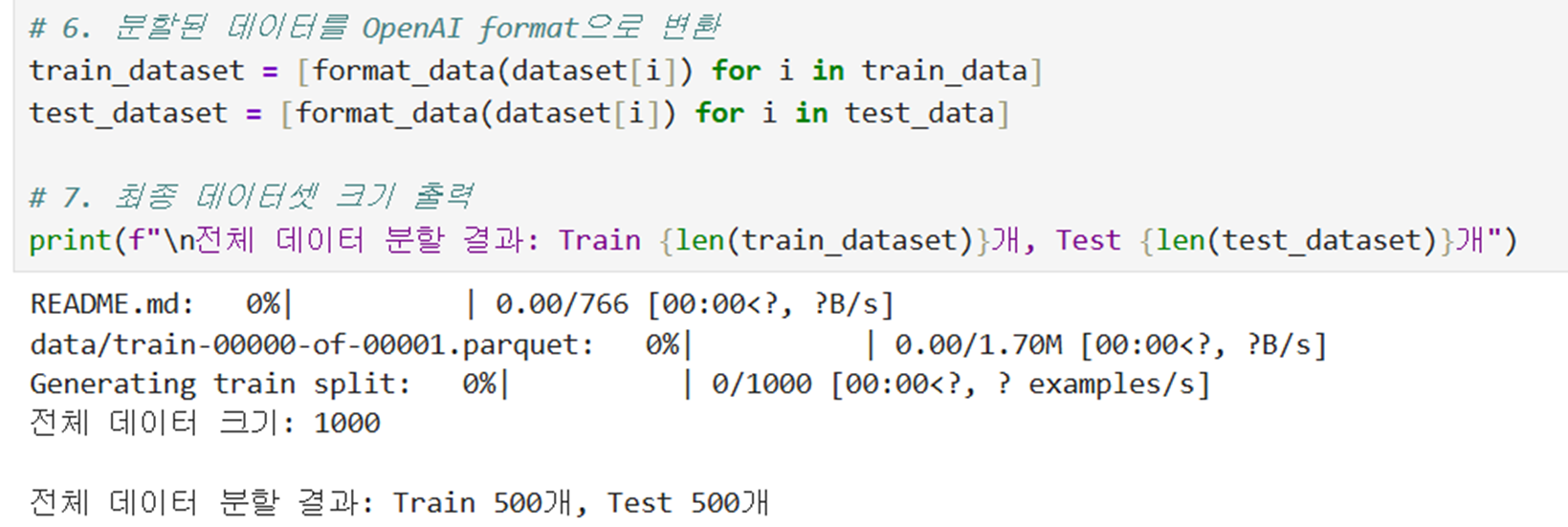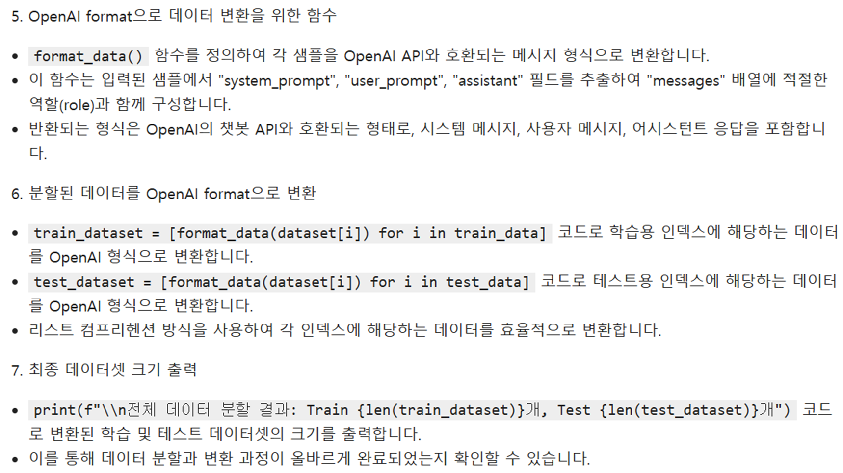 @ 데이터 전처리 : train/test 분할 -> OpenAI format으로 변환