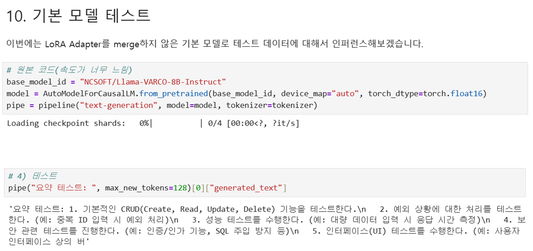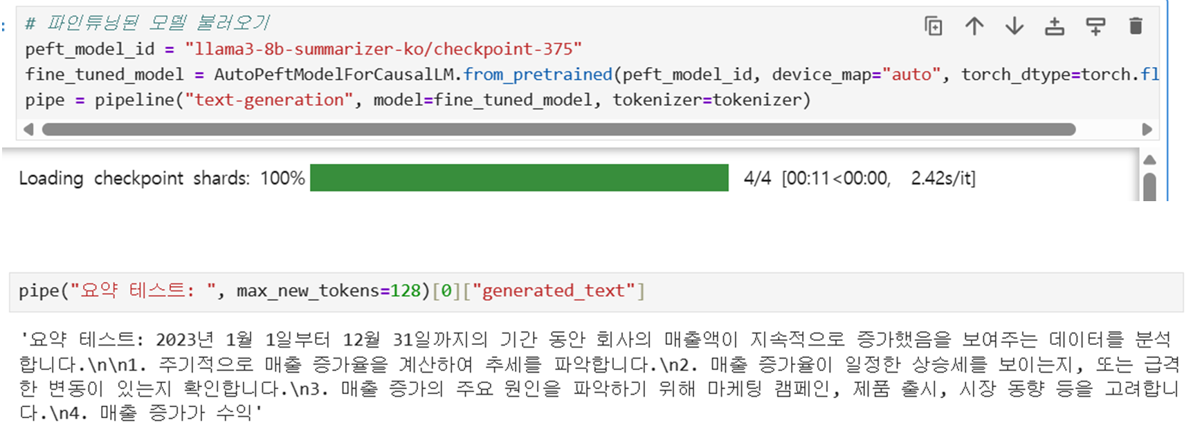 # 파인튜닝된 모델 추론