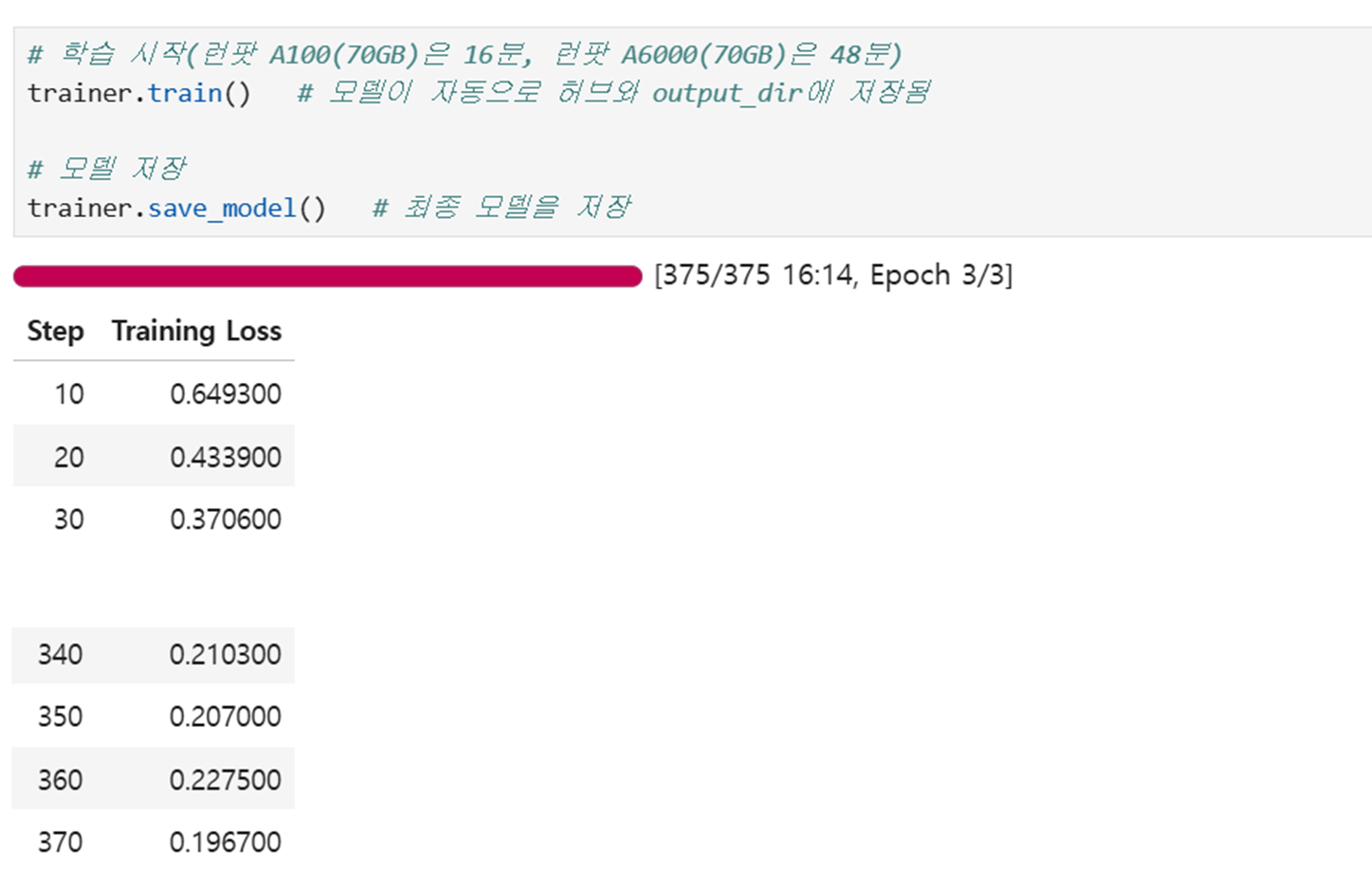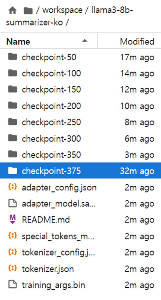 # 최종 학습 결과 : checkpoint-375가 최종 모델