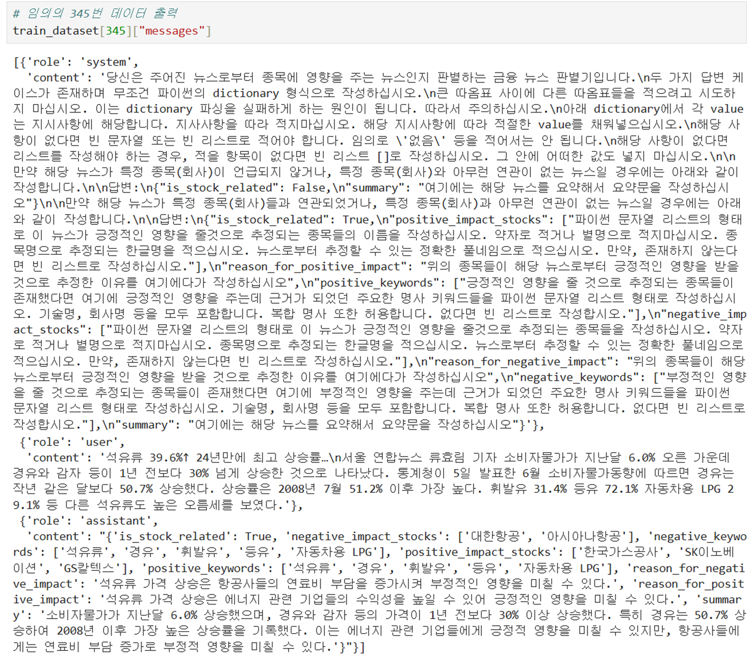 - 지난번에(ai100-1) gpt4o가 True,False 라벨링한 데이터를 허깅페이스"runiarang/finance_news_summarizer" 에 올려두었었는데, 이를 불러와서 학습에 사용한다. (전체 1,000개 중 5:5로 train:test 데이터 비율을 설정한다.)