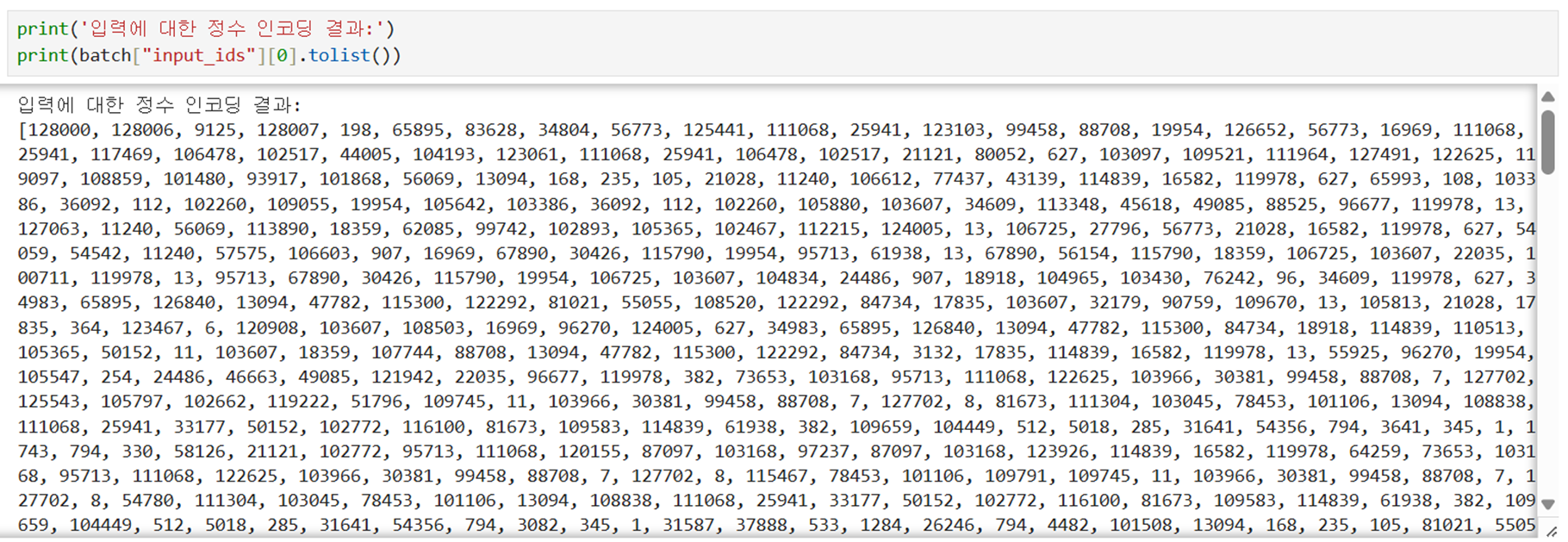 # 입력 정수 인코딩 결과