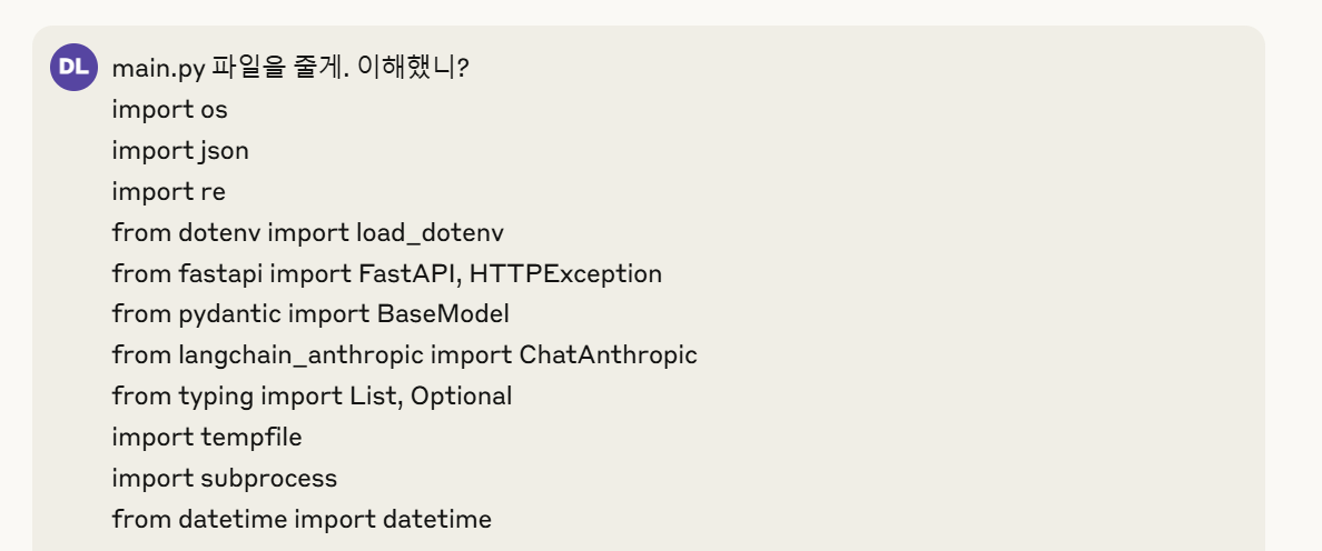 먼저 클로드에 백엔드 폴더 구조와 코드들을 제공한다.