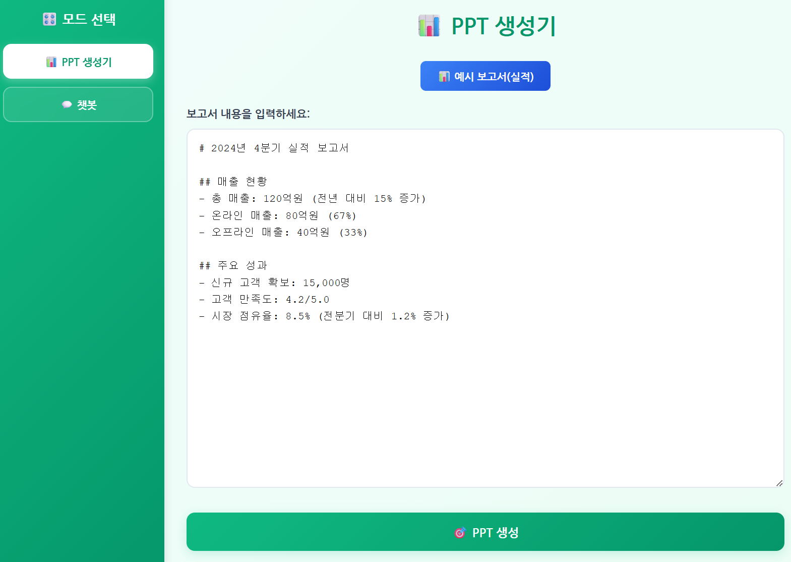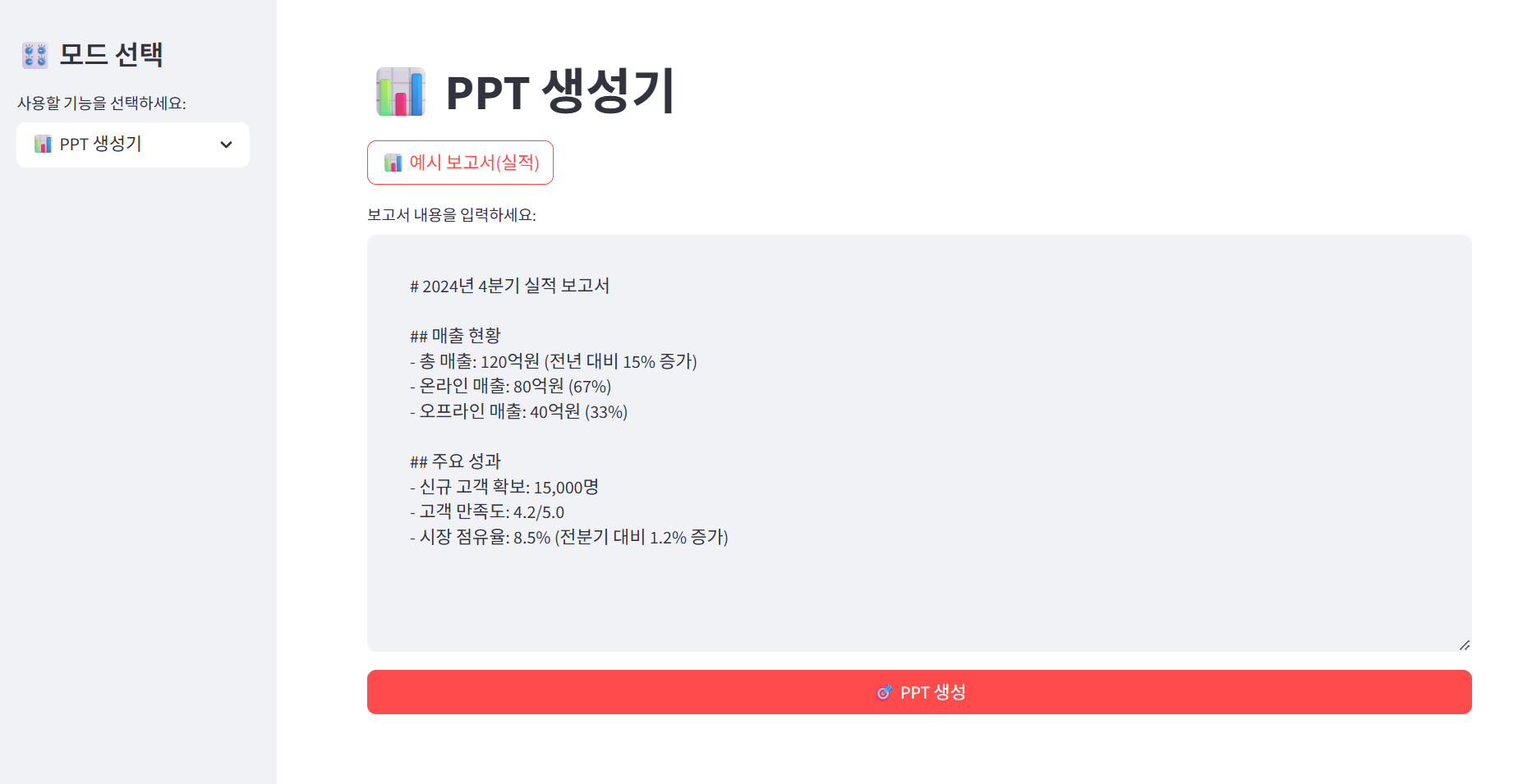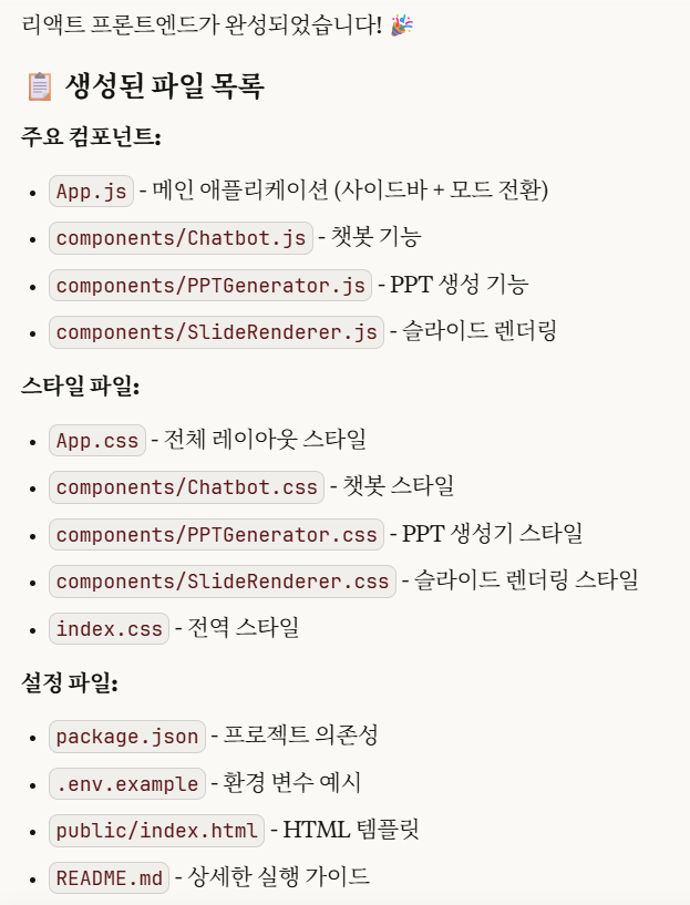 기존에 fastapi + streamlit 으로 만들어둔 "PPT 생성기"가 있다. (fsl6) 이것을 클로드 바이브코딩을 이용해 리액트로 바꿔보려 한다.