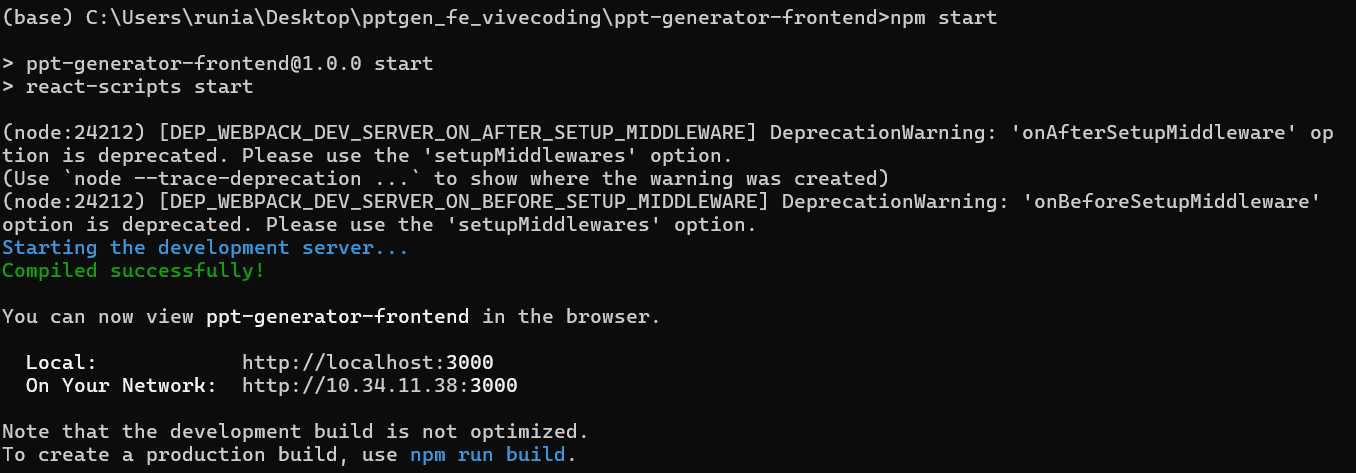 (1) 새 React 프로젝트 생성 : npx create-react-app ppt-generator-frontend