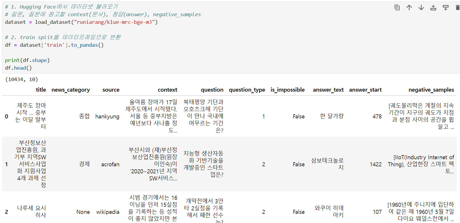 @ 활용 데이터 : 허깅페이스 "runiarang/klue-mrc-bge-m3" 데이터 중 500개 샘플링