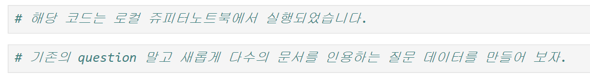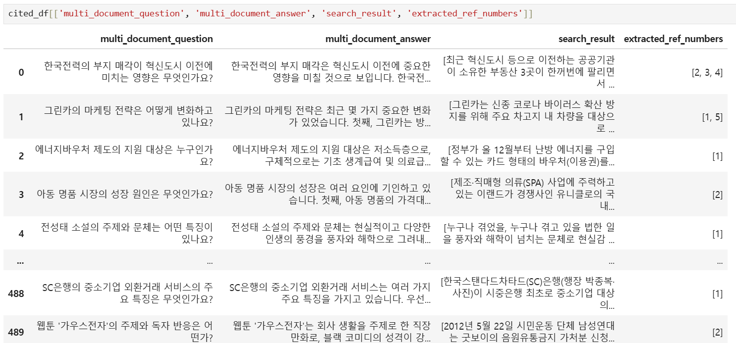 # -> 다수의 문서를 인용해야 답변 가능한 질문을 데이터당 1개씩, 총 500개 생성해내었다.