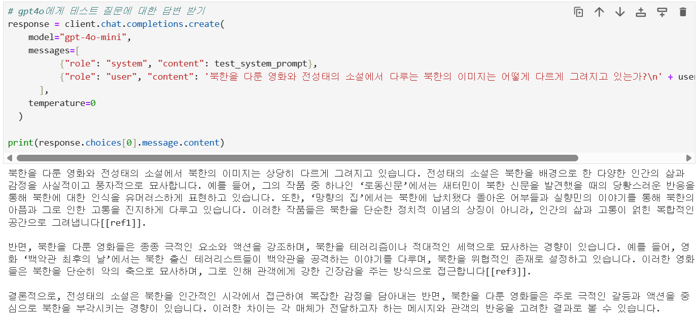 <gpt4o에게 검색된 문서로부터 질문의 답변을 작성하게 하기>