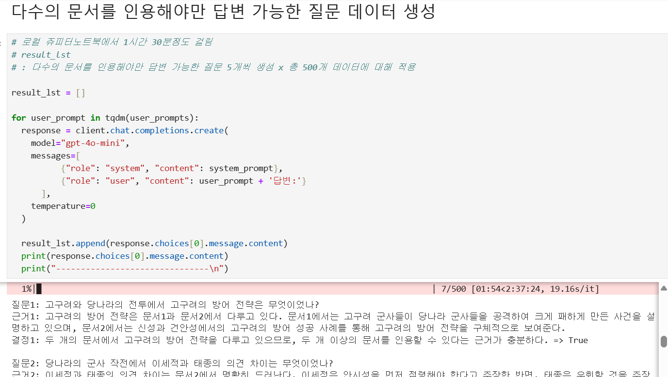 @ 상황 설명 : gpt4o를 이용해서 다수의 문서를 인용해야만 답변이 가능한 RAG용 질문 데이터셋을 생성해보자.