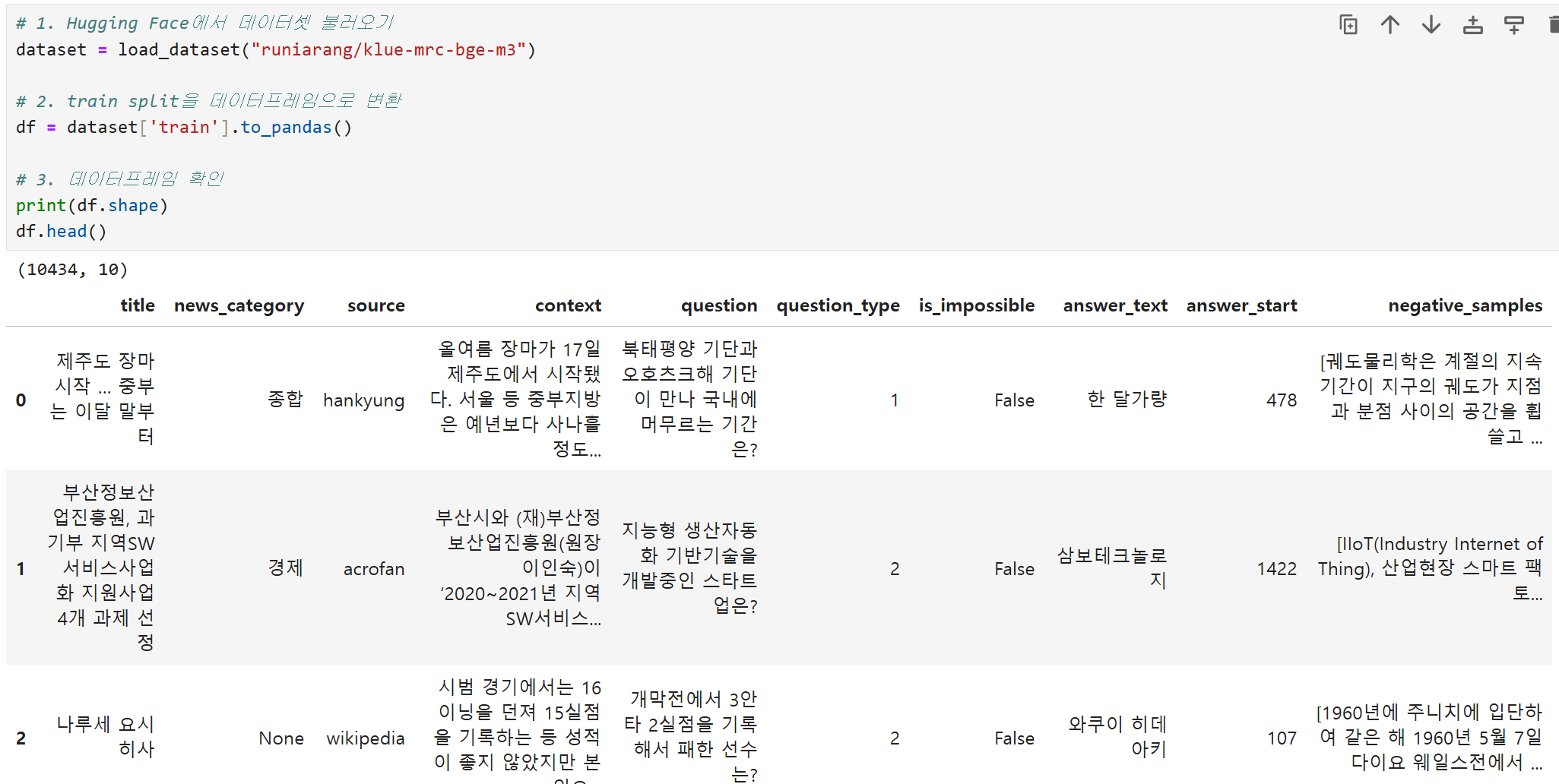 # 사용 데이터 : 허깅페이스 "runiarang/klue-mrc-bge-m3" 중 500개 샘플링