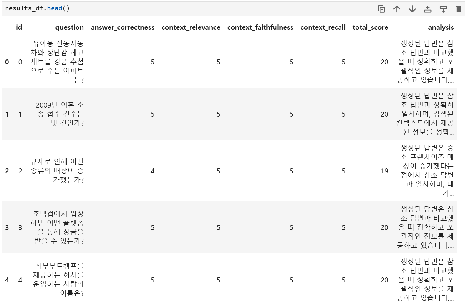 * 5점: 컨텍스트가 질문에 완전히 답변하기 위한 모든 필요한 정보를 포함함
