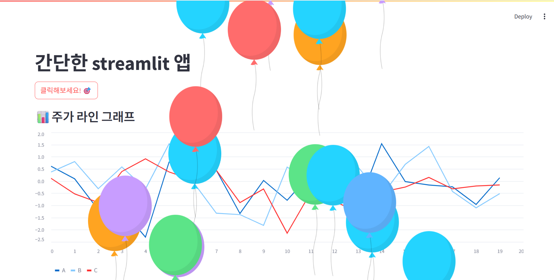 간단한 라인 차트를 나타내는 그래프인데, 버튼을 클릭하면 풍선도 나온다.