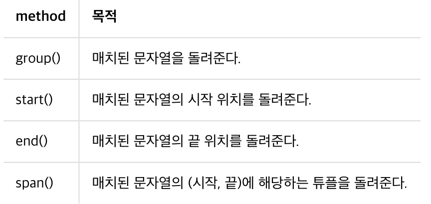 match 메서드와 search 메서드를 수행한 결과로 돌려준 match 객체에 대한 메소드